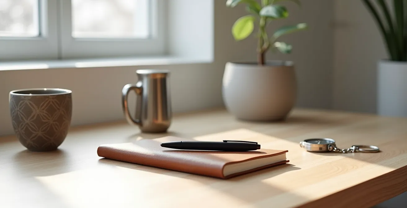 - Inventur der Berührungspunkte: Listen Sie alle alltäglichen Gegenstände auf, mit denen Sie regelmäßig interagieren (Schlüssel, Stift, Geldbörse, Tasse etc.).